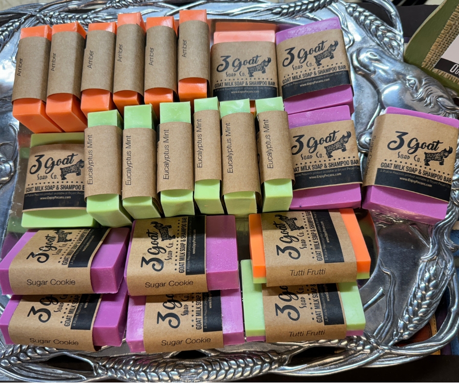 Handmade goat milk soap. Shop our selection in our farm store at 22270 County Road 1475, Ada, Oklahoma.