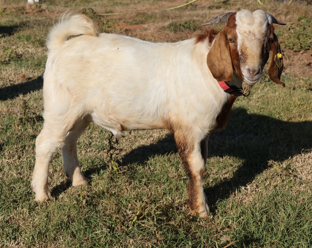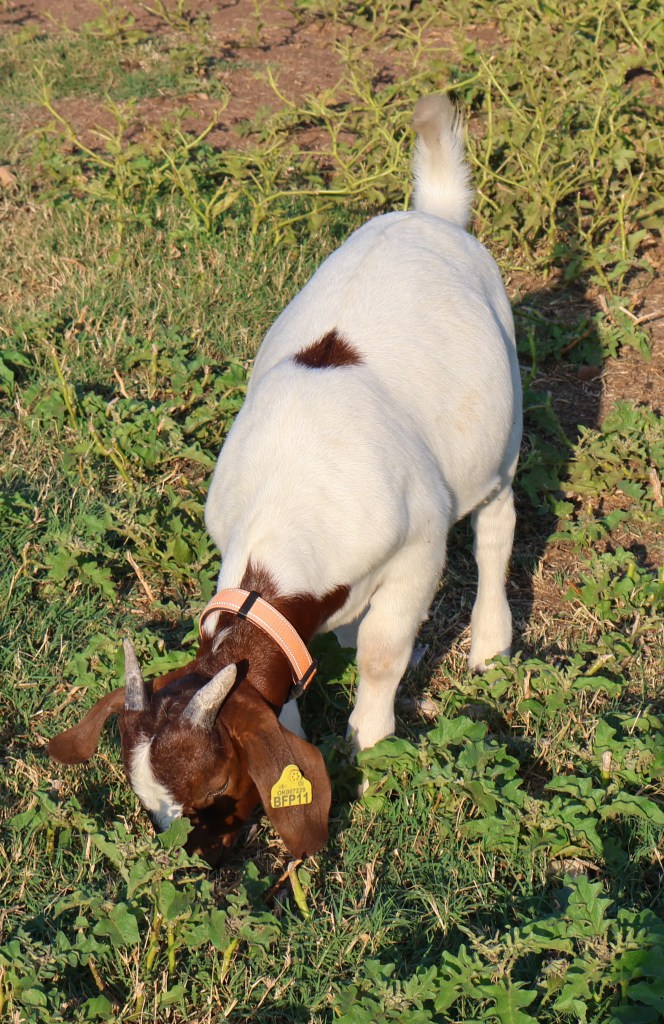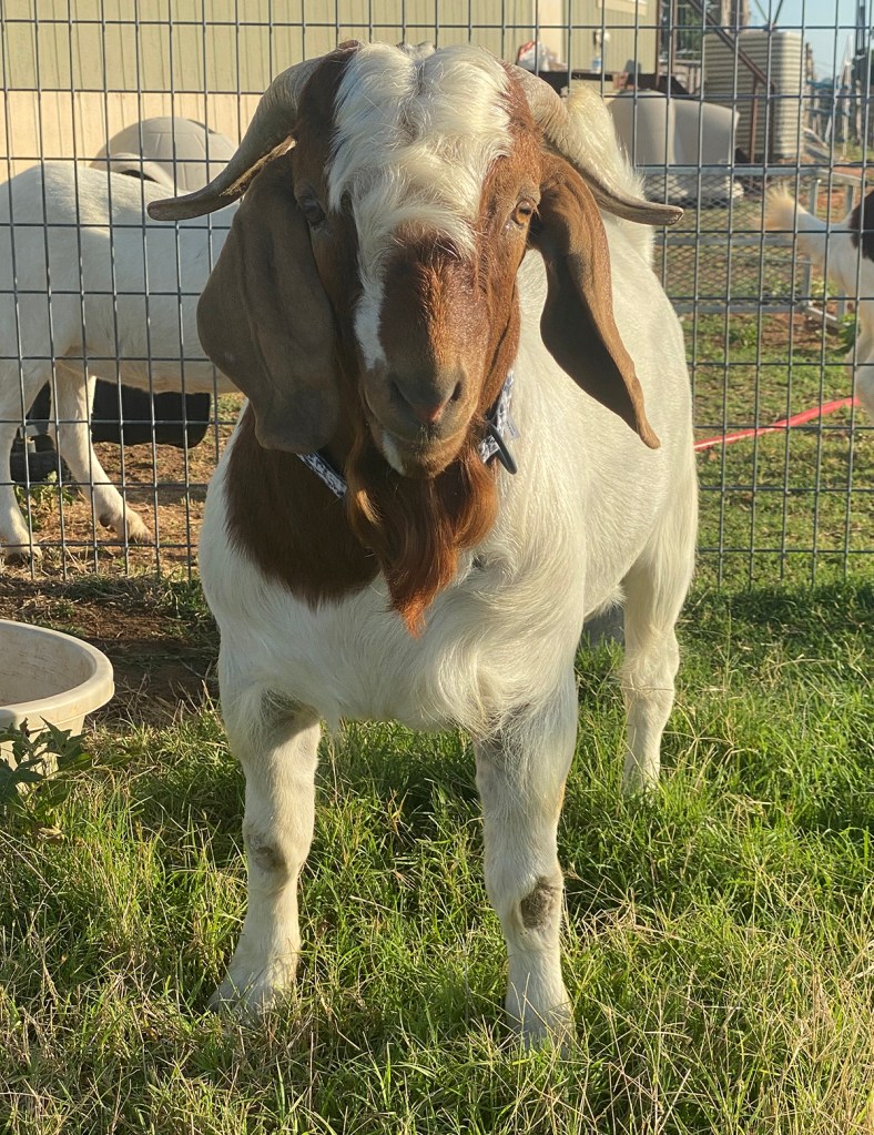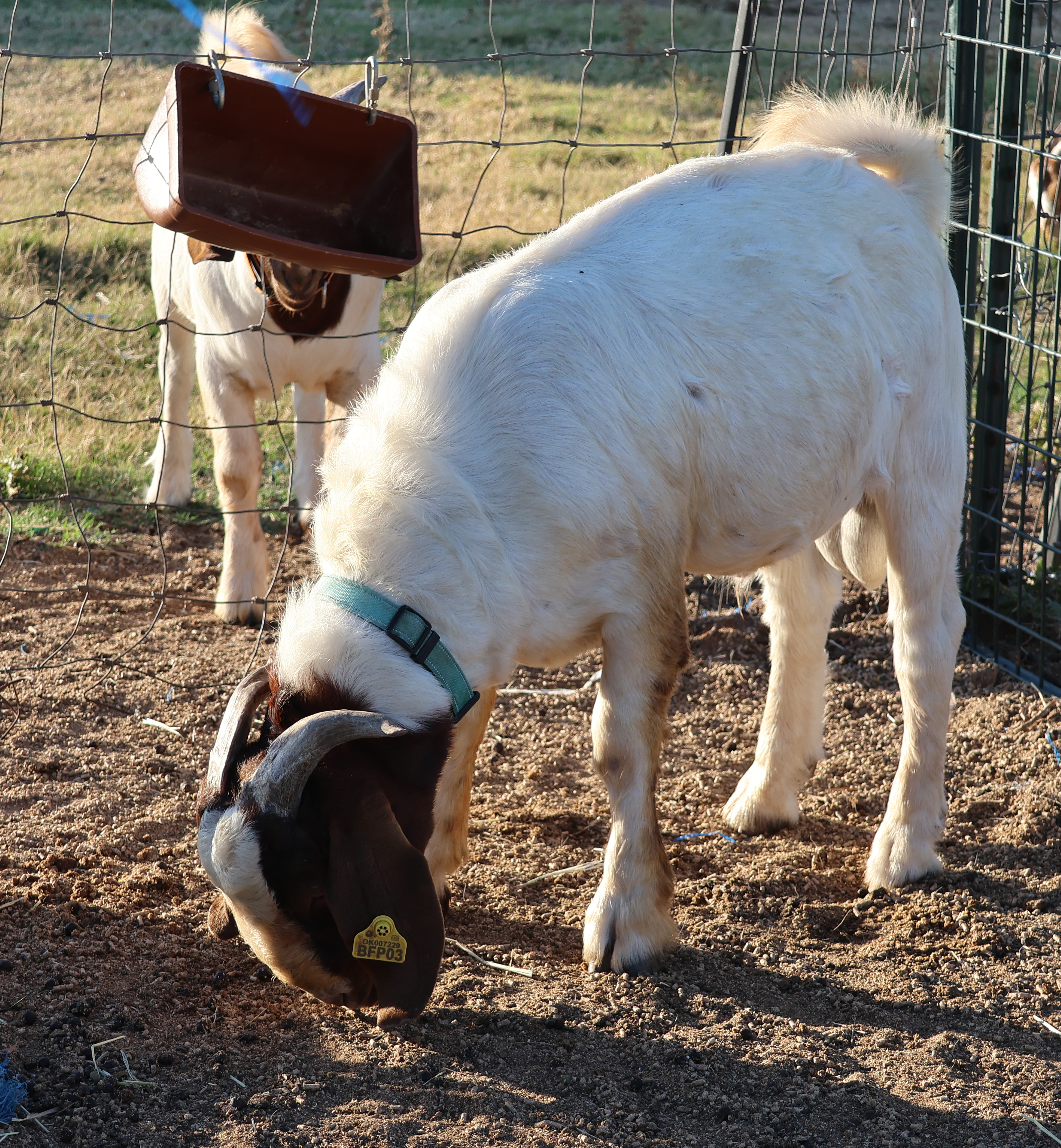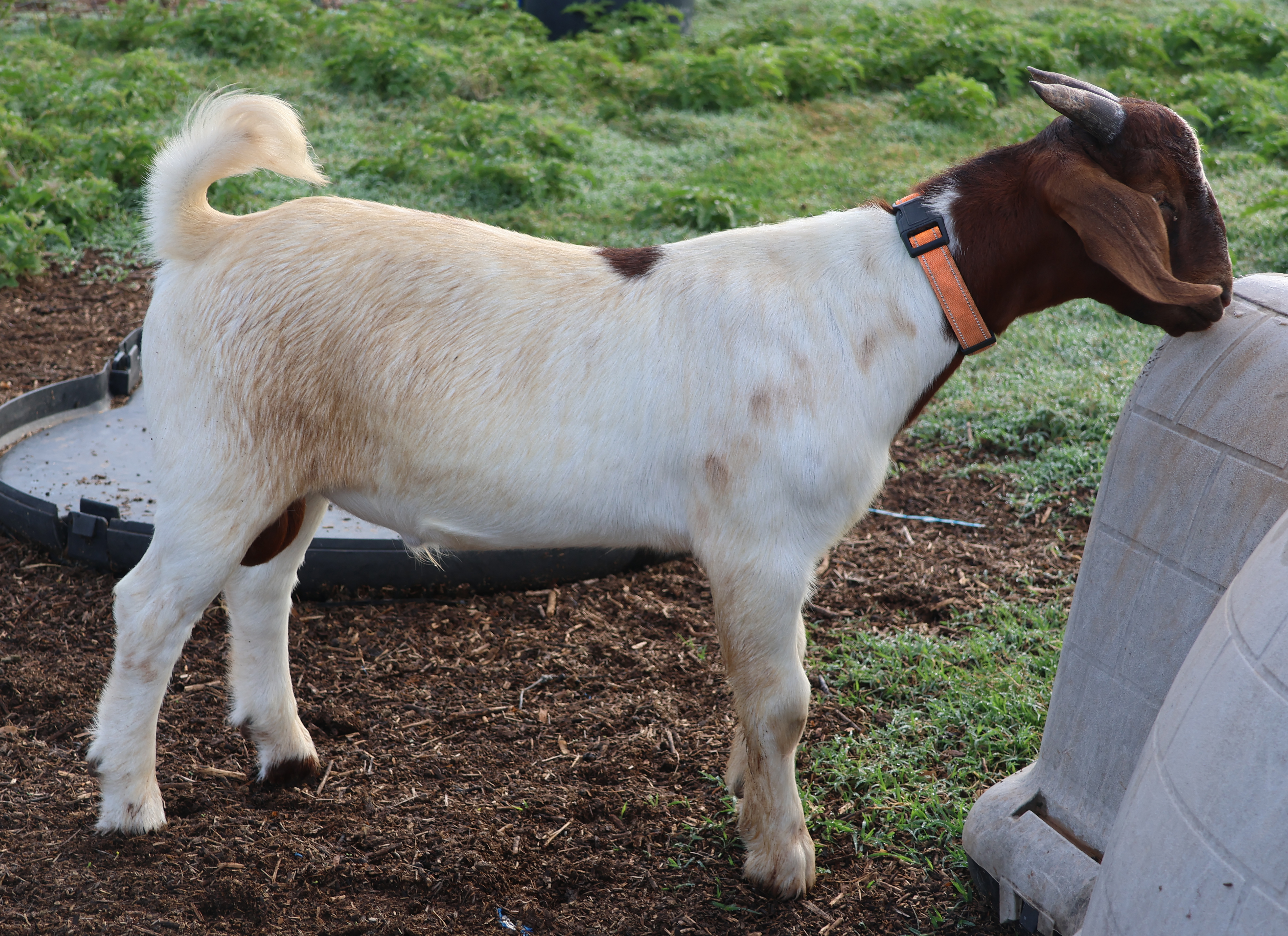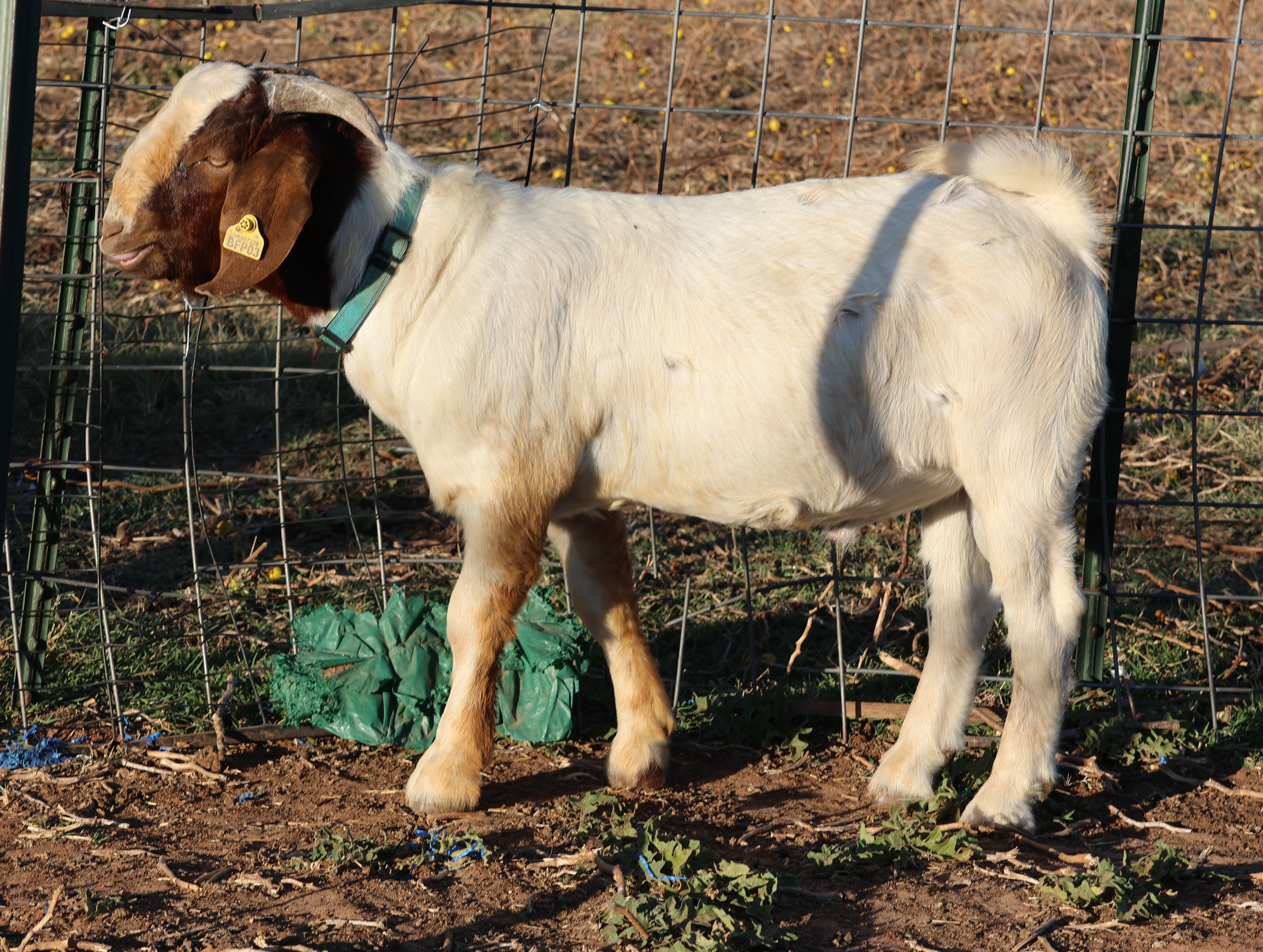 You won’t find a wether-bred buck for a more reasonable price. Schroeder was born April 6, 2024, and is out of a son of Kester-bred Hot Wheels (a son of Draggin’ Main), who has produced numerous champions for Irick Show Goats. Up-to-date on vaccinations. Schroeder’s estimated weight (via tape) on 10/7 was 84 lbs. Traditional color. Pigmented scrotum! Located northeast of Ada between Francis and Allen. Must pick up on the farm.