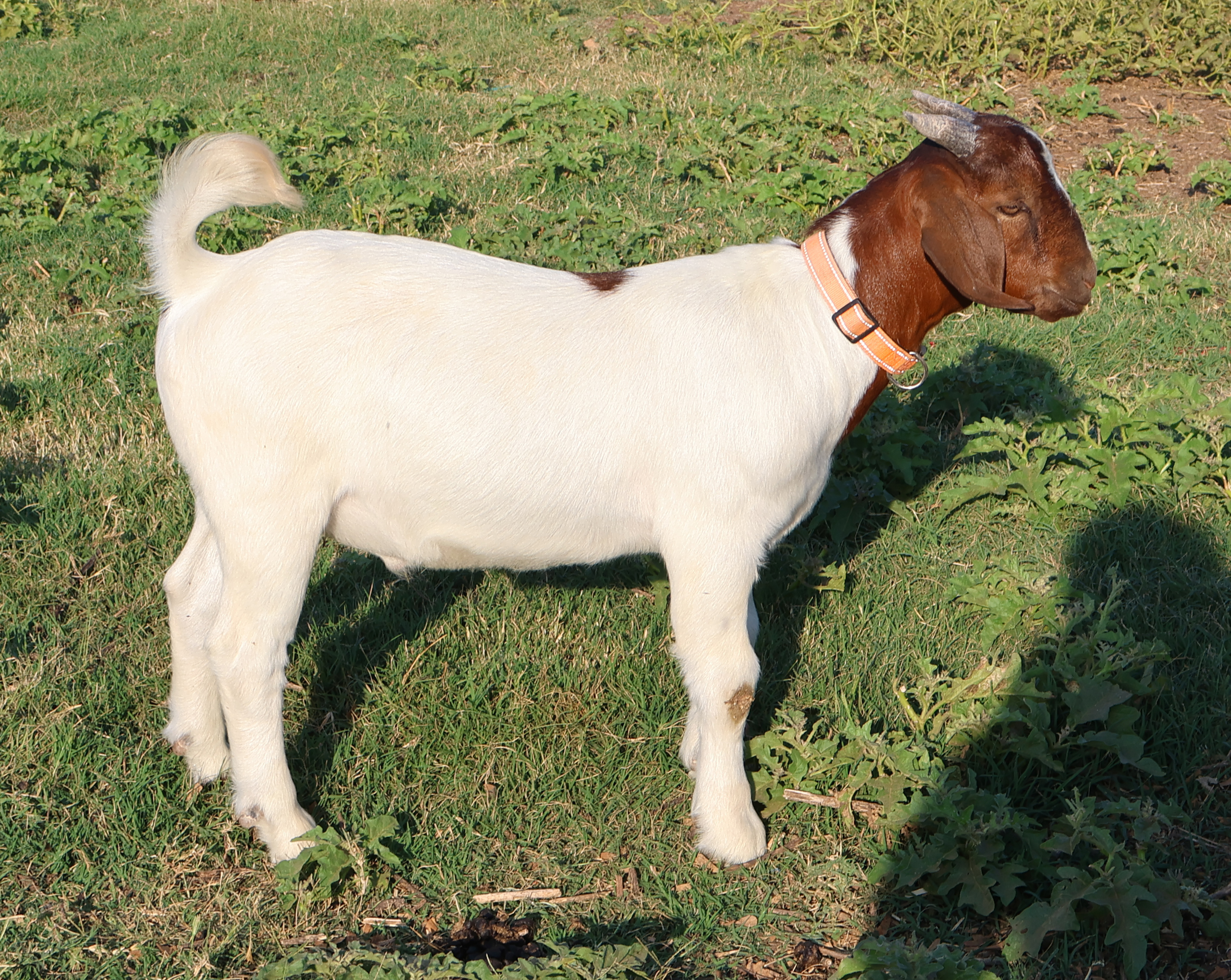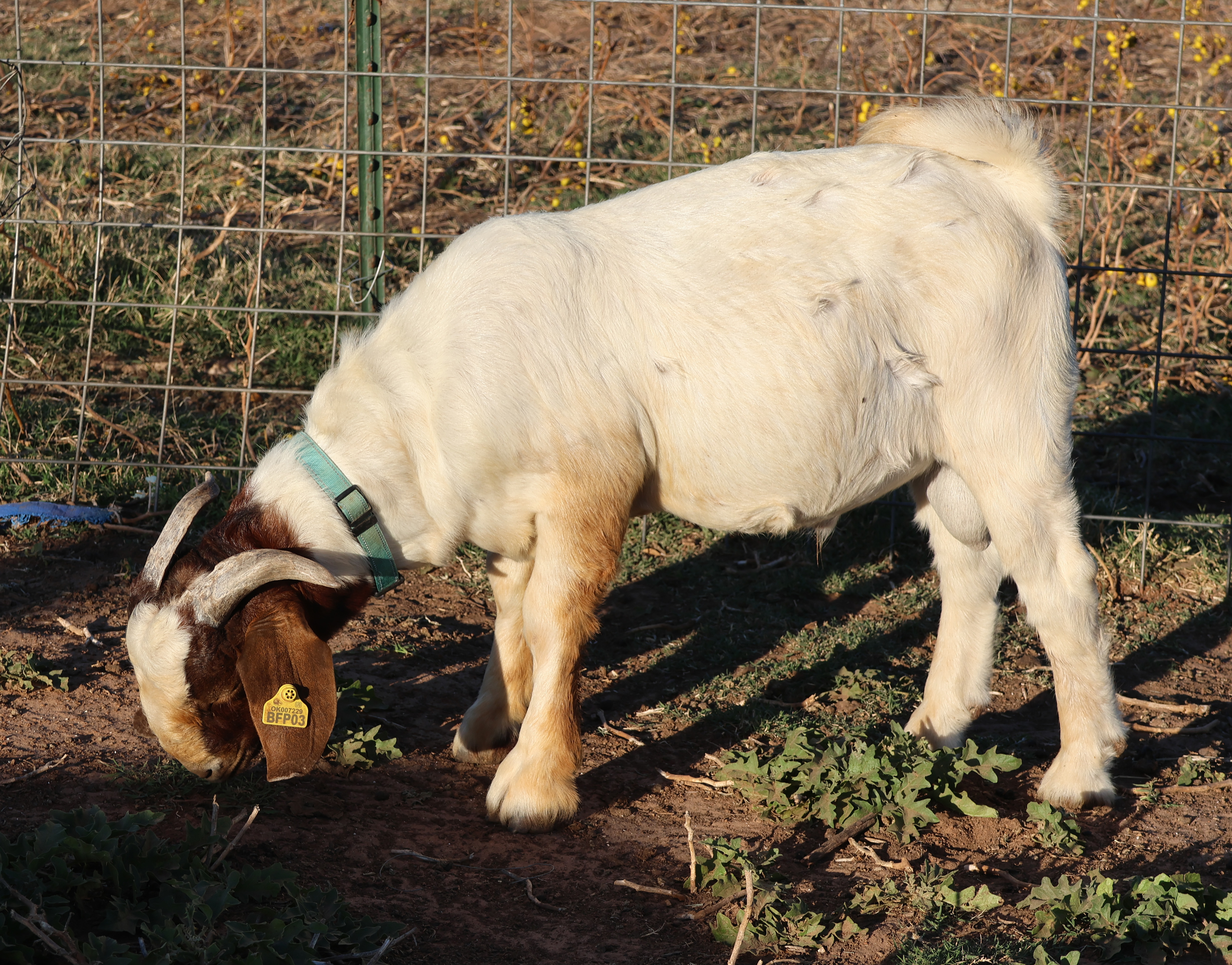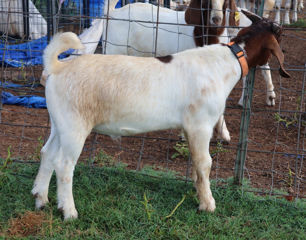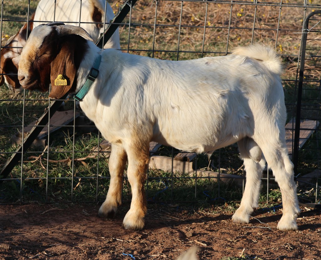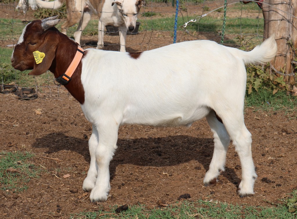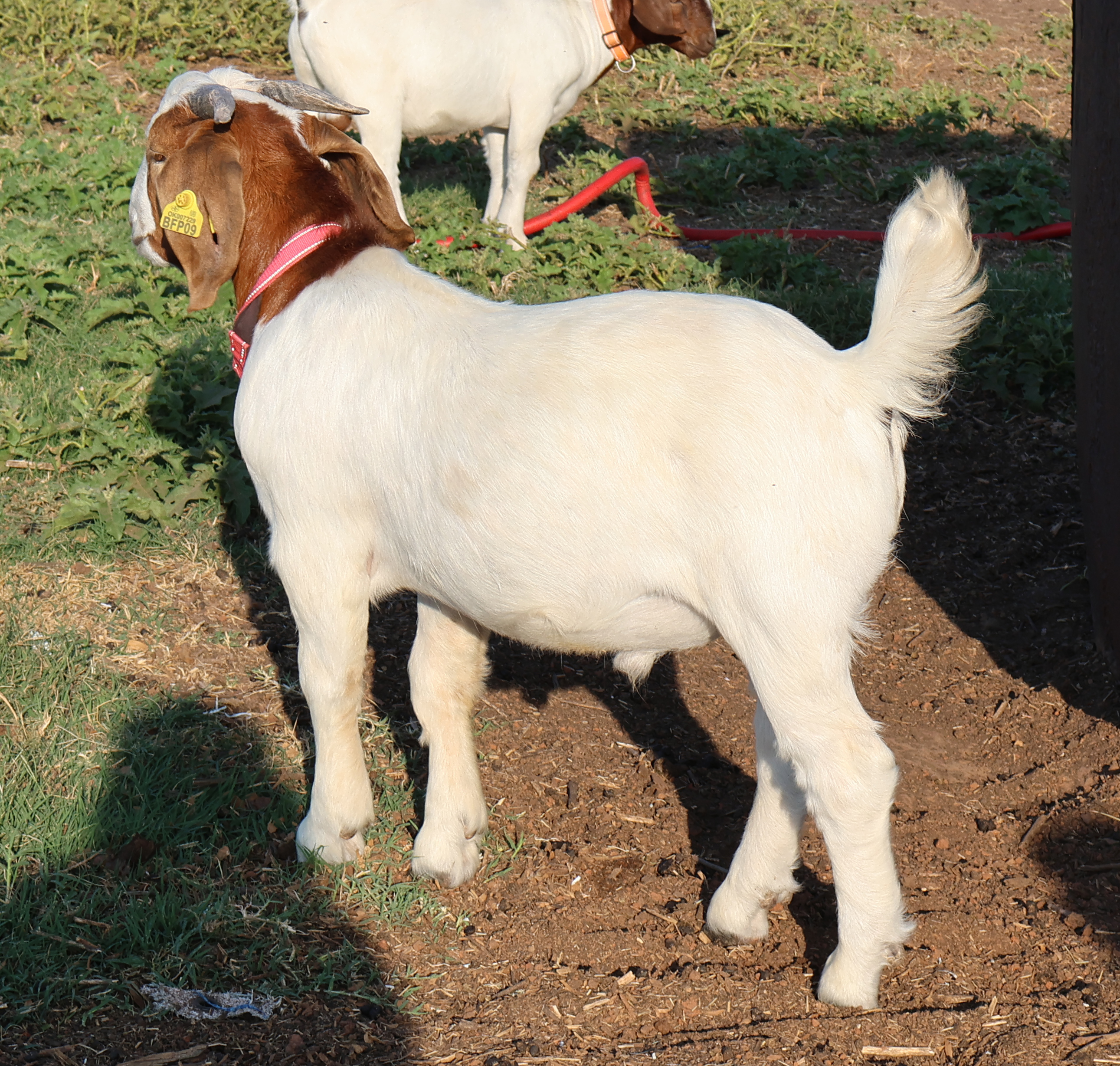 You won’t find a wether-bred buck for a more reasonable price. Schroeder was born April 6, 2024, and is out of a son of Kester-bred Hot Wheels (a son of Draggin’ Main), who has produced numerous champions for Irick Show Goats. Up-to-date on vaccinations. Schroeder’s estimated weight (via tape) on 10/7 was 84 lbs. Traditional color. Pigmented scrotum! Located northeast of Ada between Francis and Allen. Must pick up on the farm.