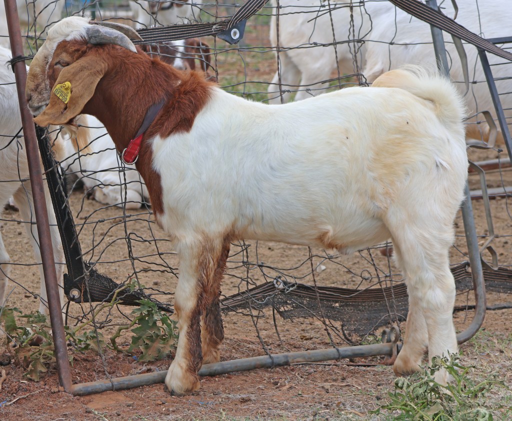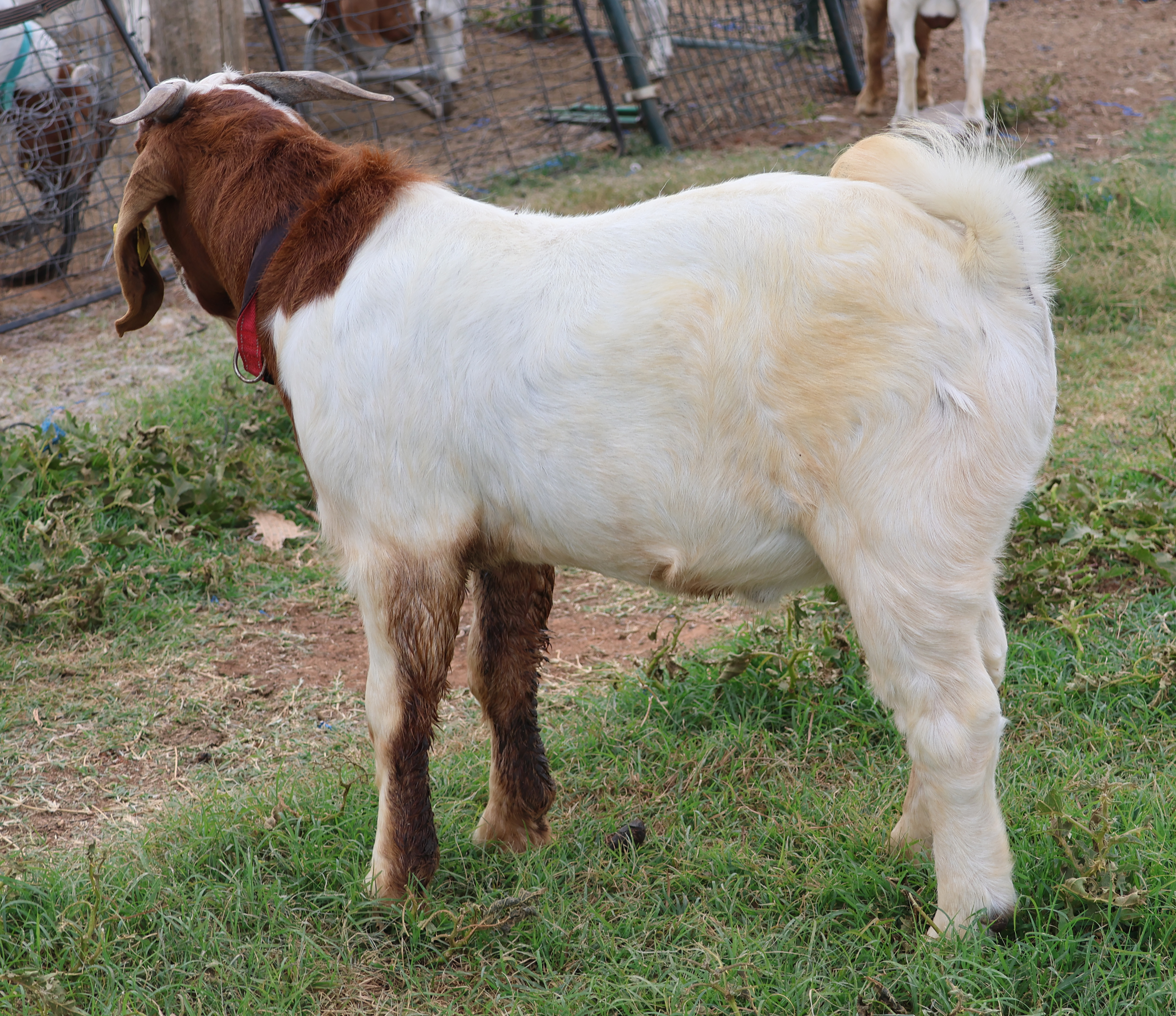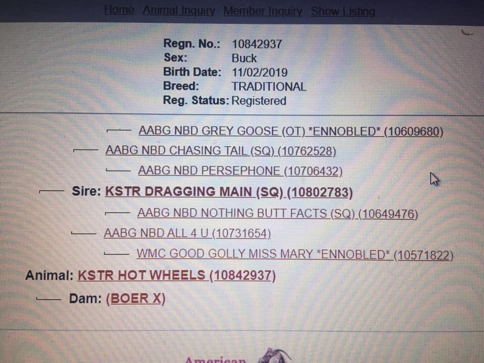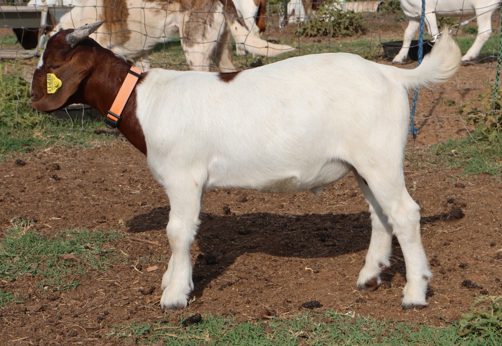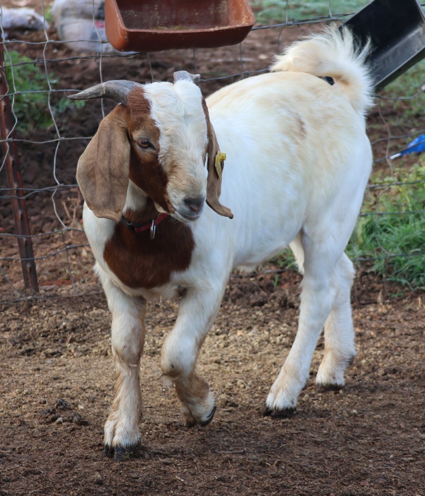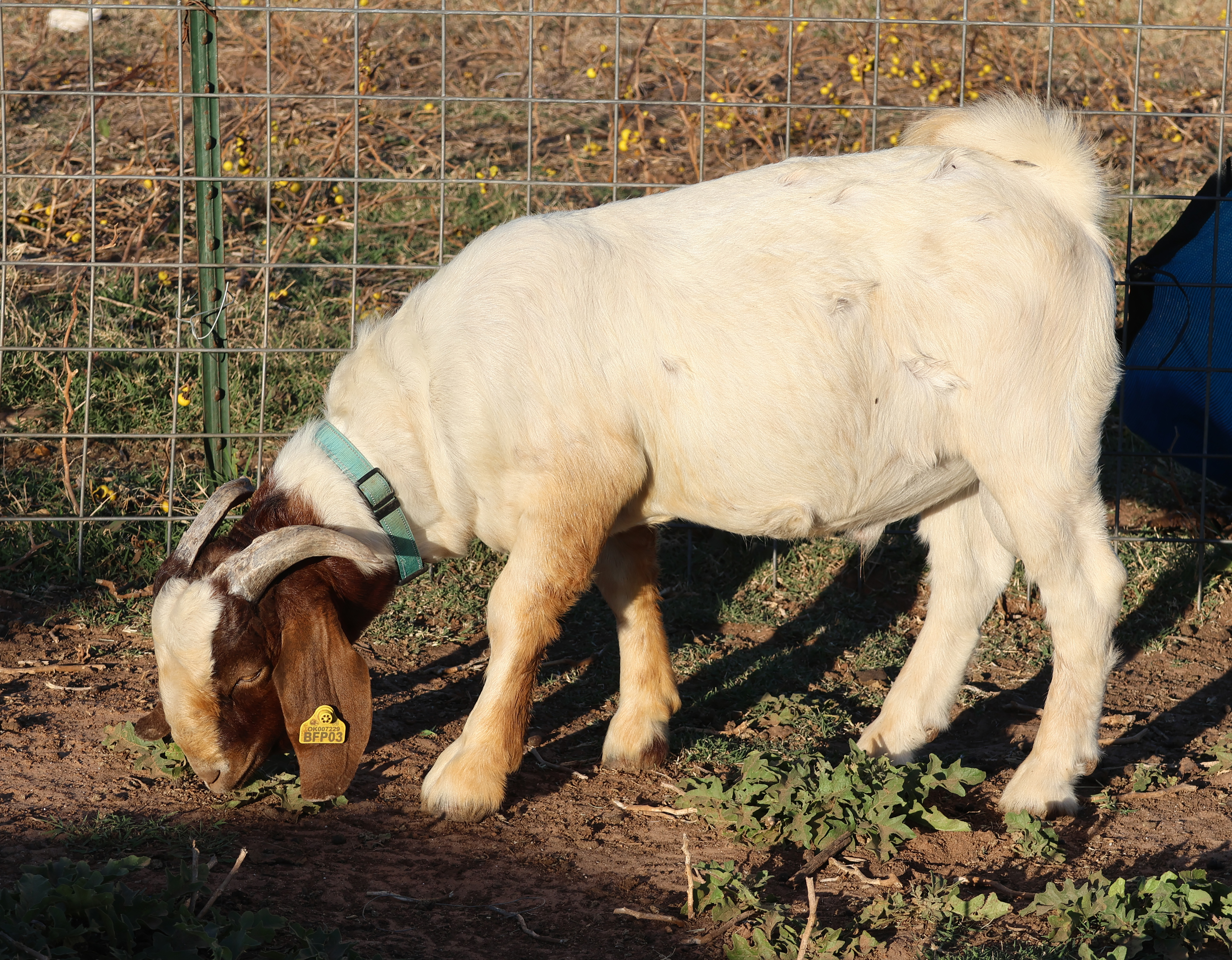 You won’t find a wether-bred buck for a more reasonable price. Schroeder was born April 6, 2024, and is out of a son of Kester-bred Hot Wheels (a son of Draggin’ Main), who has produced numerous champions for Irick Show Goats. Up-to-date on vaccinations. Schroeder’s estimated weight (via tape) on 10/7 was 84 lbs. Traditional color. Pigmented scrotum! Located northeast of Ada between Francis and Allen. Must pick up on the farm.